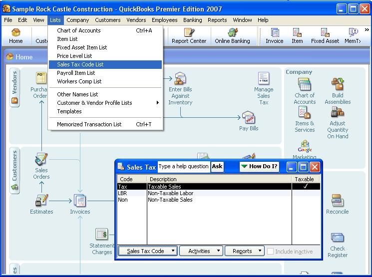 The QuickBooks Sales Tax Code List: