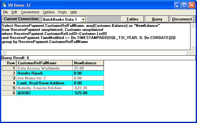 Thank you.  After I run these separate queries, do I then need a third to select the most recent balance in cases where customers have activity in both the Sales and ReceivePayment tables   - i.e select for those where Sales.CustomerRefListId=ReceivePayment.CustomerReflListId, and if they exist then pick the NewBalance from the record where TimeModified is most recent?