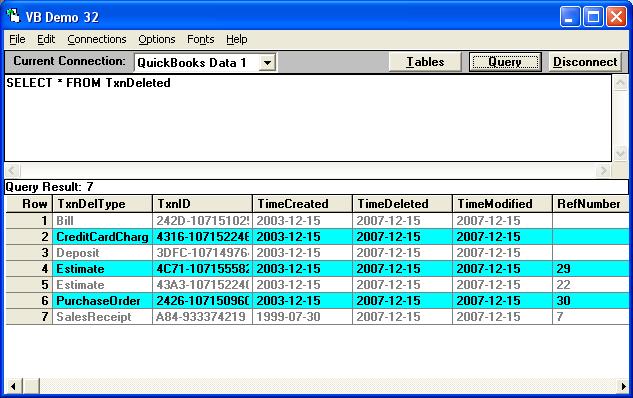 | The TxnDeleted table can also be seen using QuickBooks 2006 (USA version). |